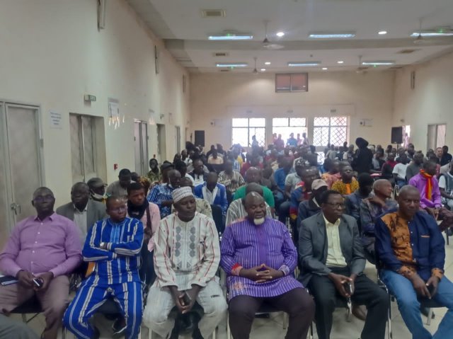 Ici, au premier plan, des responsables d’organisations syndicales, dont Moussa Diallo (2è à partir de la gauche), suivant attentivement les communications.