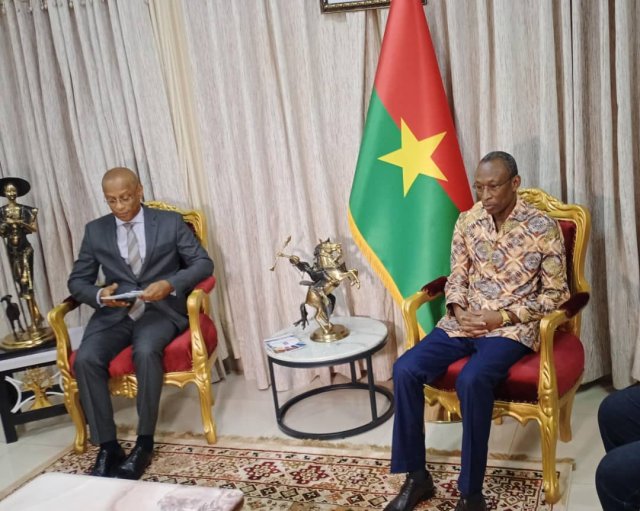 Burkina : Le représentant résident du PNUD reçu à la PrimatureLe Premier ministre, Dr Apollinaire Joachimson Kyélèm de Tambèla, a reçu ce lundi 26 août 2024 à la Primature, le représentant résident du Programme des nations unies pour le développement (PNUD) au Burkina Faso, Alfredo Teixeira. C’est autour des interventions du PNUD dans le domaine de la gouvernance et de la paix durable, de l’environnement et des changements climatiques, de l’énergie et de la résilience, qu’ont porté les échanges. "Nous avons un projet important de stabilisation dans la région du Liptako Gourma" a indiqué au sortir de l’audience Alfredo Teixeira, ajoutant que cet échange était important. Selon lui, le chef du gouvernement a donné son avis sur l’amélioration que le PNUD pourrait faire dans la mise en œuvre de ses activités au Burkina Faso. Le représentant résident du PNUD au Burkina Faso et sa délégation ont par ailleurs remercié le Premier ministre pour son accueil et sa disponibilité. Il a ajouté que ce type de rencontres se fera très souvent pour améliorer le travail de son institution. Farida Thiombiano |