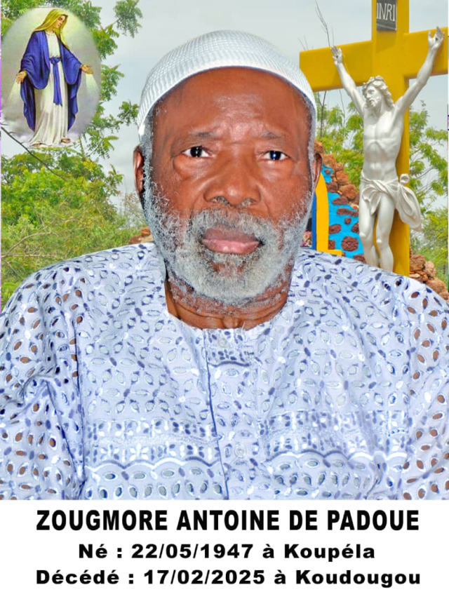 Vous réitèrent leur profonde gratitude et vous invitent à vous joindre à la famille dans la prière et le recueillement afin d’honorer sa mémoire et de le confier à Dieu lors des funérailles chrétiennes à Koudougou