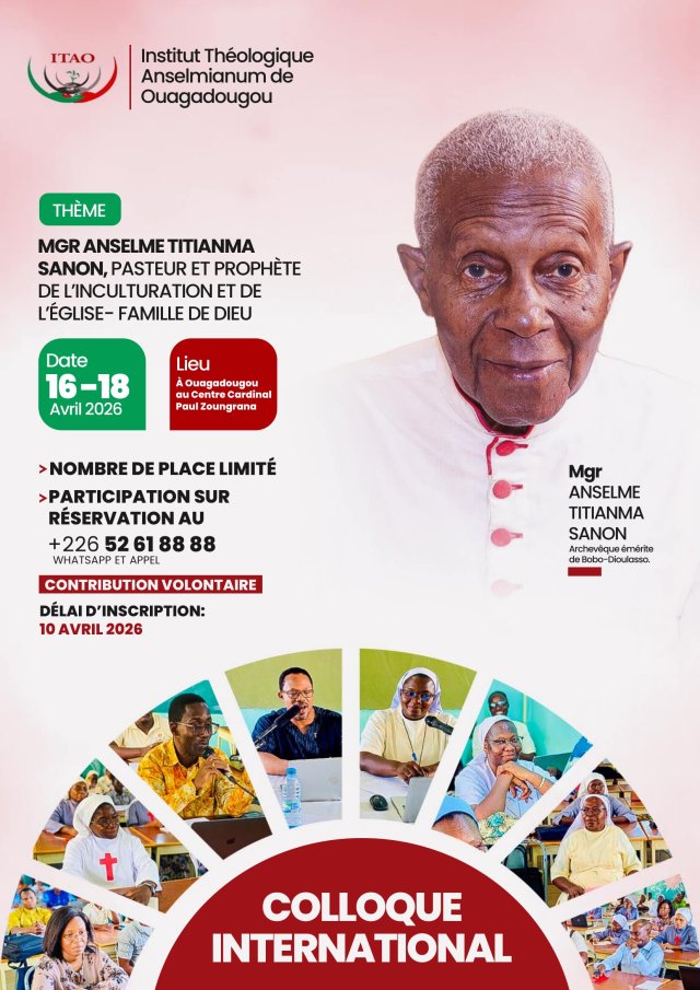 Colloque international du 16 au 18 avril 2026 sur « MGR ANSELME TITIANMA SANON, PASTEUR ET PROPHETE DE L’INCULTURATION ET DE L’ÉGLISE- FAMILLE DE DIEU »