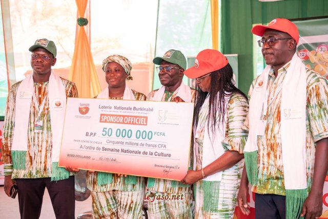 SNC 2026 : La LONAB remet 50 millions de FCFA au comité d’organisationLa Loterie nationale burkinabè (LONAB), sponsor officiel de la 22e édition de la Semaine nationale de la culture (SNC), a officiellement remis, ce dimanche 26 avril 2026, un chèque de 50 millions de francs CFA au comité national d’organisation de l’événement. Le chèque a été remis par Aymar Tiendrébéogo, conseiller technique du directeur général, Ibrahim Ben Harouna Zarani. Partenaire historique de cette grand-messe culturelle, la nationale des jeux de hasard perpétue ainsi une tradition de soutien à la valorisation de la culture depuis plus de quatre décennies. Prenant la parole au nom du directeur général de la LONAB, le conseiller technique Aymar Tiendrebeogo a rappelé que cet appui financier s’inscrit dans une logique de responsabilité sociétale. « Les ressources générées par les jeux de hasard sont réinvesties au profit des populations, notamment dans les domaines culturels, éducatifs, sociaux et sportifs », a-t-il rappelé, faisant écho au slogan de l’institution : « Les lots aux gagnants, les bénéfices au Faso ». Des prix spéciaux pour honorer le génie artistique « La culture est un filet essentiel du développement durable et de la cohésion sociale », a-t-il déclaré, soulignant la résonance particulière du thème retenu pour cette édition : « Culture, jeunesse et transmission des valeurs sociales ». Un thème que la LONAB dit faire sien, convaincue qu’une jeunesse enracinée dans sa culture constitue un levier de résilience pour la nation. Au-delà du chèque de 50 millions, la LONAB s’engage également à financer plusieurs prix spéciaux dédiés à la danse traditionnelle, à la musique instrumentale et à la chanson traditionnelle, témoignant d’une volonté de valoriser concrètement le génie artistique burkinabè. Une directrice générale satisfaite, mais ambitieuse La directrice générale de la SNC, Christiane Carole Sanon/Coulibay a chaleureusement accueilli ce soutien, saluant en la LONAB « un partenaire fiable » présent aussi bien lors des éditions de la SNC que dans les activités menées hors biennale. Tout en exprimant sa gratitude, elle n’a pas manqué de formuler l’espoir de voir ce partenariat se renforcer davantage, compte tenu des exigences croissantes liées à l’organisation de la manifestation et de l’ambition affichée pour ses prochaines éditions. Gagnez au Faso Loto 5/90 Rappelons que la Semaine nationale de la Culture est l’occasion pour la LONAB de faire la promotion de son jeu « Faso Loto 5/90 ». Il s’agit d’un jeu à côte fixe qui permet de parier sur au moins un des cinq numéros qui seront tirés au sort parmi 90 boules numérotées de 1 à 90. Il est disponible en ligne depuis le jeudi 03 octobre 2024 sur le site https://www.fasoloto.bf. La mise minimale d’un ticket est de 200 FCFA et les joueurs peuvent gagner jusqu’à cinq cent millions de francs CFA. Fredo Bassolé |