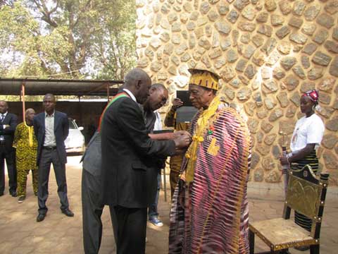Au peuple burkinabè à qui il a dédié sa décoration, l’initiateur du musée de Manéga reviendra sur la devise du Burkina Faso, nom tiré de la culture locale. « La devise du Burkina, « Mongpôga, bôyûur », « Piissbaoré, moin sana », ce qui veut dire « refuse le ventre au profit de l’honneur », « balaie le grenier pour donner à l’étranger ». « L’étranger c’est celui qui vient, qu’on ne connait pas. L’impossible ethnicisme, l’impossible destruction du voisin. C’est le dialogue religieux. C’est-à-dire que c’est un pays qui ne s’intéresse pas au ventre, mais plutôt à la dignité, l’honneur ». Plus loin, il ajoutera que ce pays qu’il ne cessera de servir, est défini par le Mogho Naba Kouda au 14e siècle, selon la datation des coutumiers en ces termes, « Burkina, nedkoun dog bi koaga, karlar la souga ». En d’autres termes « l’homme du Burkina ne doit pas enfanter un être dilué. L’enfant d’un Burkina est la hache ou le couteau. Il doit être percutant, il doit travailler, il ne doit jamais se reposer, il doit construire le pays ».