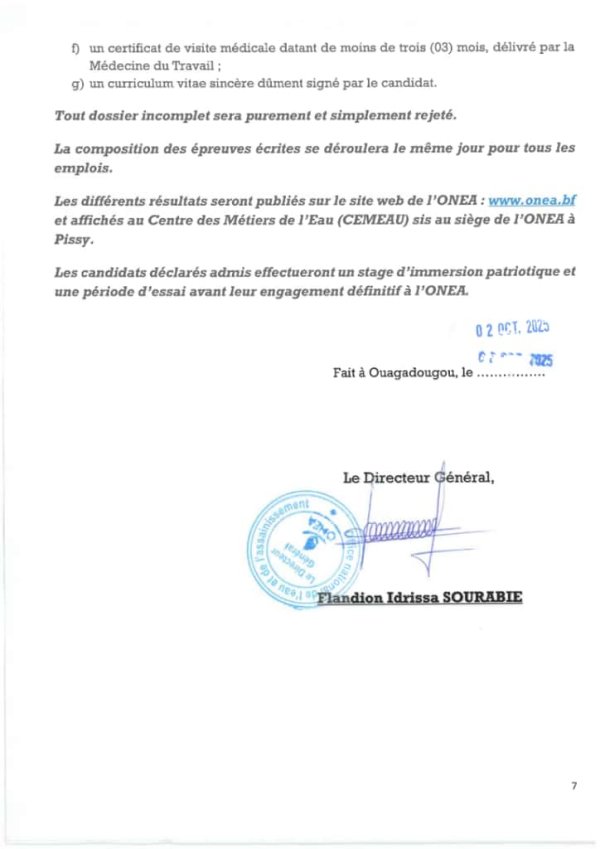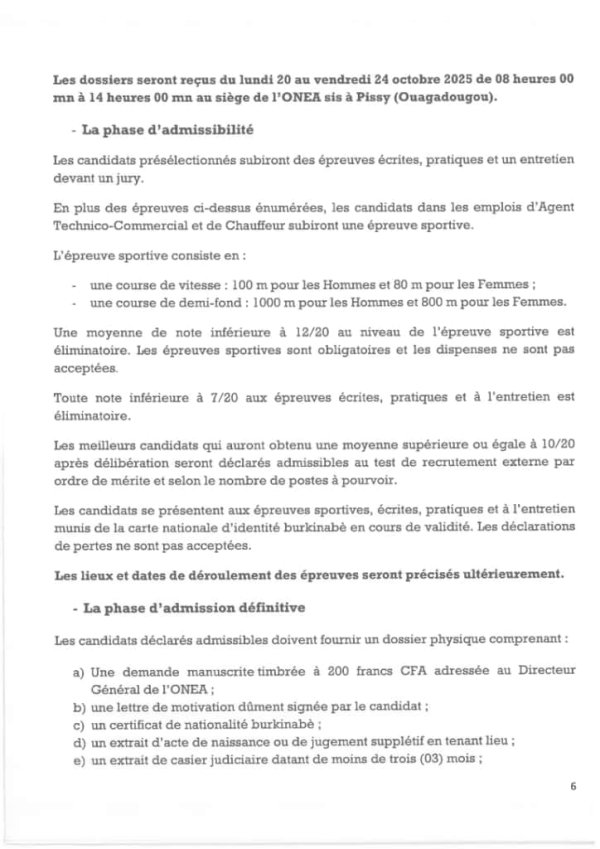 ONEA : Ouverture d’un test de recrutement de personnel de divers profils