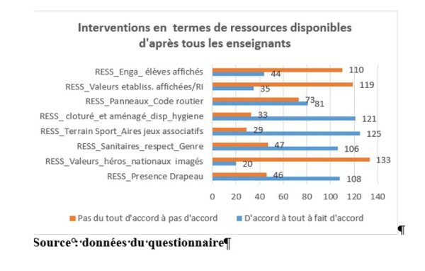 Dans les résultats de la recherche mise en œuvre, les enseignants estiment qu’il existe des interventions en termes de ressources disponibles pour lutter contre l’incivisme au sein de leur établissement (Cf. graphe No3) seulement, ces interventions ne sont pas systématiques (ressources rares), tel que l’extrait suivant l’indique :