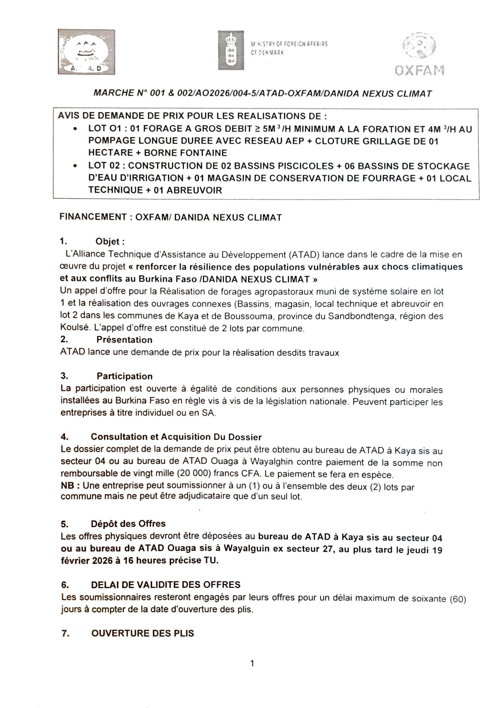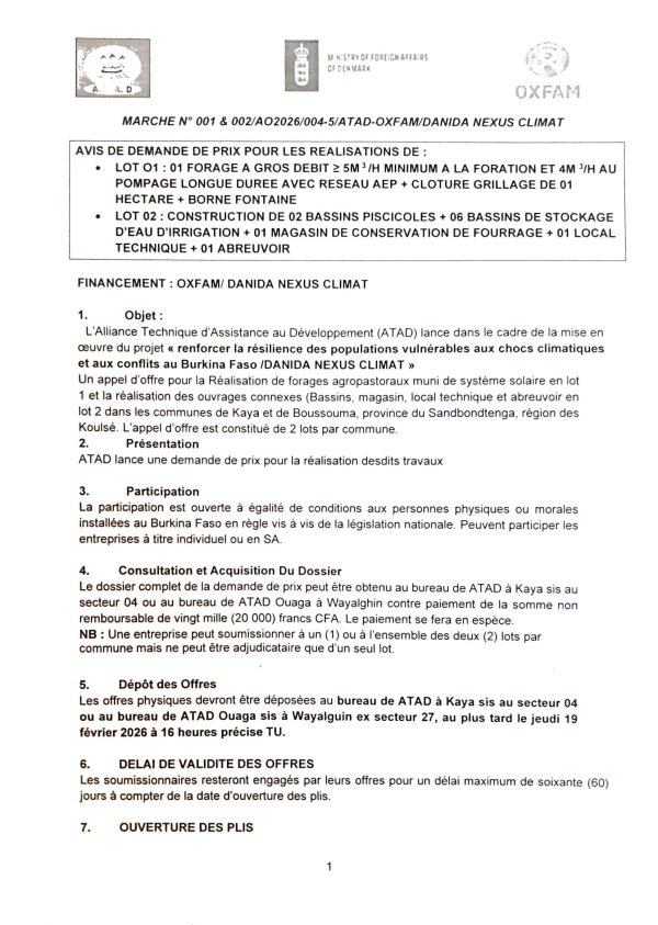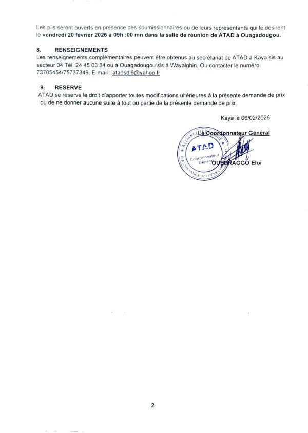 Avis de demande de prix